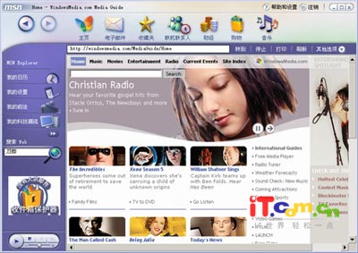 在线娱乐、购物 通过MSN Explorer还可以收听和观看网上的多媒体内容、进行购物和了解财经信息。点击工具栏中的“音乐”按钮可以进入windows media的主页,在上面可以欣赏到各类影音内容,轻松体验网络生活带来的方便和快感。(图6)