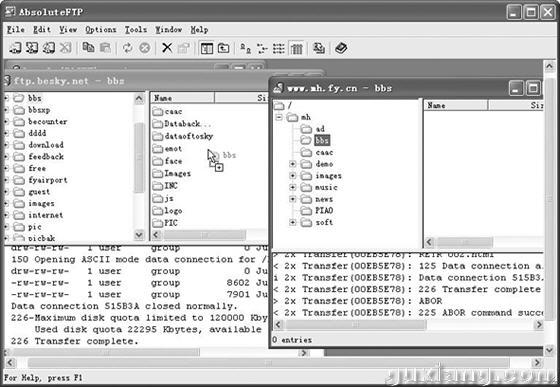 提示:同时开启多个站点的FTP远程目录是AbsoluteFTP区别于其他FTP软件的最大优点,利用这个优点不仅可以管理镜像站点,还能对不同内容的多FTP服务器实现集中管理。