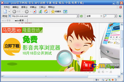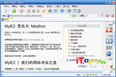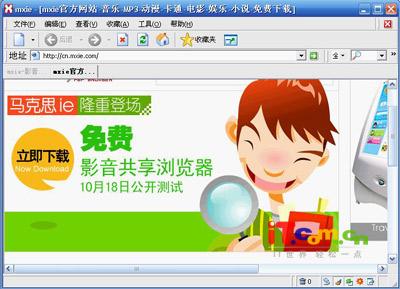 浏览器的主界面怎么这样的眼熟呢?原来MXIE浏览器的主界面与MYIE浏览器的完全一致(如图3、4的对比),只是在MXIE浏览器中少了几个工具栏图标,看了一下MXIE官方的说明才明白,原来MXIE采用的是MYIE的内核,那他们的软件界面相同也是无可厚非的了,但接着笔者又是一头雾水,MYIE不是采用的IE浏览器的内核吗?什么时候MYIE有自己的内核了?