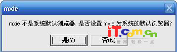 笔者的一个好友今天从QQ上发过来一条消息,推荐给笔者一款带有P2P功能的浏览器:MXIE,由于最近浏览器市场闹的沸沸扬扬,不时有带有新功能的新品出现,所以笔者马上打开到其官方主页, 看到了这款名为马克思IE的浏览器功能介绍,不管怎样还是也下载再说,但接下来的试用,让笔者是大跌眼镜,下面笔者就与大家一起来看一下这款浏览器,是不是值得我们安装使用。 软件小档案: 软件名称:MXIE 软件版本:0.2.2.3 软件语言:简体中文 软件平台:Win9X/WinNT/Win2000/WinME/WinXP/Win2003 软件授权: 免费 软件大小:2230K 软件下载地址:http://cn.mxie.com 一、软件主界面及基本功能: 软件安装文件下载完成后,双击就进入了软件的安装过程,软件的安装与一般软件一样,只要一路“下一步”就完成了,安装完成后,MXIE会自动运行,软件会检测是不是默认浏览器,如果不是会弹出是否设浏览器为默认浏览器的询问窗口(如图1).