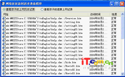 7、 上网记录 我们也可以查看孩子游览过的网址,这样就可以进一步了解他们上网的情况了,只要右键点击系统托盘的图标选取查看网址记录就可以了,在这里详细的列出了上网查看过的网址及时间(如图10)