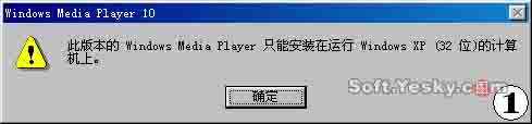 需要指出的此版本的Windows Media Player只适用于Windows XP的各个版本,其它版本的Windows操作系统,包括Microsoft最新的Windows 2003,安装时都会弹出(如图1所示)的对话框拒绝安装。