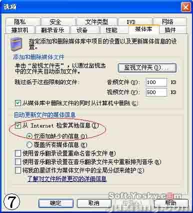 另外,您还可以自己对媒体库中的媒体文件进行手动分级。利用自动或手动分级,你可以创建基于星级的自动播放列表,以便你快速查找和播放喜欢的媒体文件,或将他们同步至便携式设备或者刻录成CD。你也可以通过艺术家或唱片集分类快速查找和播放媒体文件,这就需要给媒体文件标记媒体信息(元数据),如果你的媒体文件较多,这个工作可能非常繁重,Windows Media Player 10 提供了一些可用于自动更新曲目信息的有用功能。(如图7所示)