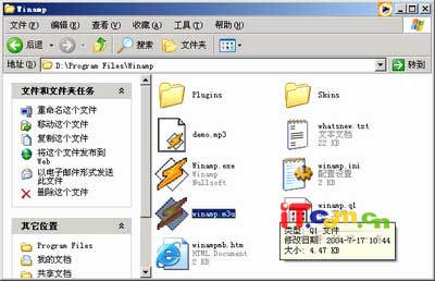 单击“确定”按钮,这样程序就会进行这些音乐文件的播放,我们不必管它。进入Winamp安装目录下,找到一个名为Winamp.m3u的文件(如图17)