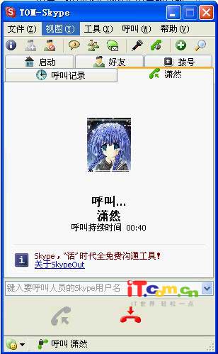 对话听到铃声后,也点击绿色电话,那样两个人的电脑就联通了(如图11),可以进行正常的语音聊天。