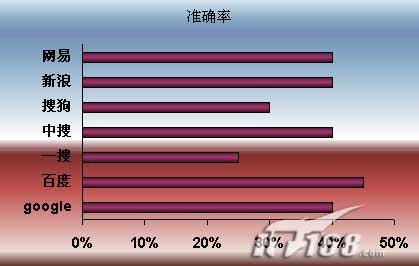 新浪和网易由于使用了google的技术,从搜索结果上看它们的数据库也是一样的,准确率一样为40%。