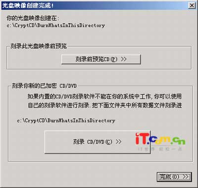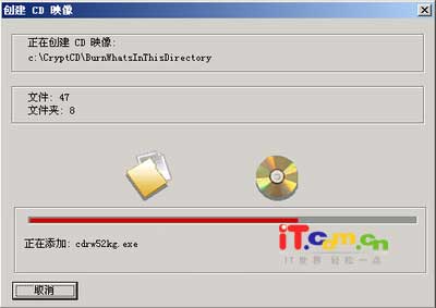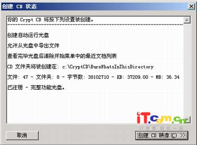 提示文件夹将被创建在c:CryptCDBurnWhatsInThisDirectory 下,单击“创建CD映像”按钮开始映像文件的制作(如图30),