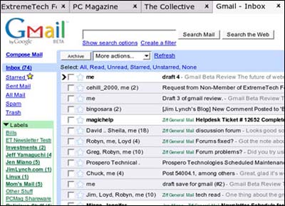所有人都知道Google对Email有所图谋。当Google在3月31日宣布正测试免费邮件服务Gmail的时候,所有人仍然不禁为之精神一振。 据悉,Gmail将为用户提供整整1G的存储空间,用户可以把自己的邮件永远保留在Google里,这个容量是MSN的500倍,Yahoo的250倍……Gmail真的这么好?以下是作者对Gmail的分析与意见。 对Gmail的使用体会:Gmail的主界面就是收件箱,这一点跟其他厂商提供的Web Mail极为类似,比如Yahoo信箱等,因此对于一个经常使用Web Mail的用户而言,Gmail非常容易上手。尽管在界面上,Gmail与其它同类产品还是有少许的差别,而这也让其界面更加美观舒适——笔者的看法。例如,在Gmail中有一个叫做“谈话”(Conversations)的功能,它是Gmail提供的一种邮件浏览模式,当处于该模式时,所有的电子邮件都会按照交流对话的方式分类。
