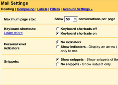 不仅如此,在默认设置中,Gmail在浏览HTML邮件时不会自动下载图片,这样你就可以避免相当一部分的木马和病毒威胁。 ■ 易用性 与传统的电子邮件程序相比,Gmail的整体操作作了较大的调整,我们在实际使用时,可能需要花费一些时间来适应。虽然你可以通过鼠标点击来完成全部的功能操作,不过Gmail还给每个功能都提供了相应的快捷按钮。 开启快捷按钮非常简单,你只需要进入“设置”(Setting)界面,就可以打开键盘快捷方式。这样,你在使用过程中只要轻按键盘,就可以完成撰写邮件、发送邮件、回复、搜索、浏览、存档等等功能,非常方便快捷。 除了设置快捷键之外,在Gmail的设置菜单里你还可以定制符合自己使用习惯的界面。你可以规定每页显示谈话内容的数目、开启个人信息(这个功能可以告诉你该邮件是专门发给你一个人的,还是发给一群人的)、选择交谈信息的显示方式。 ■ 广告问题 在Gmail里,广告的位置是非常不明显的。与其它免费邮件提供商相比,在Gmail里没有Flash、广告链接等等形式的广告存在。笔者只在少数邮件的右边找到了一些不起眼的文字广告。如果你在电子邮件中提到了计算机病毒,那么你会在Gmail的广告位置(一般位于界面的右侧)看到反病毒软件的文字广告。这些文字广告非常的不起眼,简直与我们常见的各种广告形式,比如户外的大广告招牌,有天壤之别。 ■ 总结 Gmail还不是一个完美无缺的产品,不过考虑到该产品还处于测试阶段,很多内容还有可能会作修改,因此它所存在的一些问题还是可以忍受的:例如,你无法保存邮件草稿,除非你将该邮件发送给自己;Gmail的地址簿管理功能还非常简陋,目前还无法从其它邮件程序中导入邮件地址簿列表。 与其它免费邮件提供商相比,Gmail没有提供内置的病毒扫描功能。不过Gmail也正在尝试通过一些技术手段给邮件提供基本的安全保护:例如,不可执行文件。当Gmail正式发布时,Google应该会为Gmail增加更多的病毒防护功能。