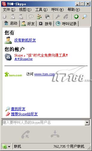 这时候我们可以看到Skype的主界面,是不是有点象NetMeeting?