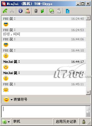 当然Skype不仅支持语音聊天,也支持文字聊天和文件传输,而且还有几个非常可爱的表情,笔者很是喜欢。