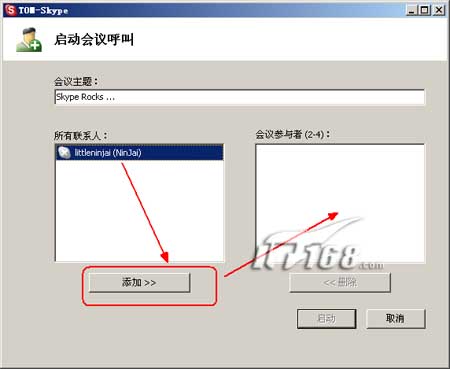 如何要多人语音聊天,那就选择“工具→创建会议”并把要参加的联系人添加“会议参与者”一栏中,Skype最多允许4个好友同时聊天。