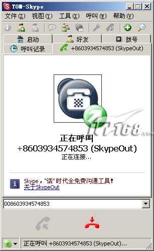如果你的点卡中余额大于可供一分种通话用,就可以使用Skype来给普通电话通话,在Skype中切换到“拨号”标签,拨号的规则如下: