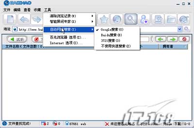 该软件内置了多种搜索引擎,包括GOOGLE、Baidu搜索、3721搜索等,你可以自行决定采用哪种搜索引擎,具体设置方法是:依次打开“工具”→“自动网络搜索”,然后选择你要使用的搜索引擎即可。