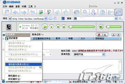 点击右上角的“百兆P2P在线多功能播放器”按钮,在“播放列表”一页中,可以在左边的“音乐菜单”的右键菜单中新增一个音乐菜单,如“刘德华”。在右边的文件列表中右键菜单中,选择“新增”文件,选中您想加入的文件。并可以选择音乐类别和写上一段内容介绍,点击“上传”即可。上传后,将可以在“论坛交流”的“音乐菜单”的相应版块看到您所上传的菜单列表。