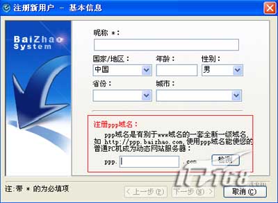 外网用户在注册帐号时,可以同时注册ppp域名。