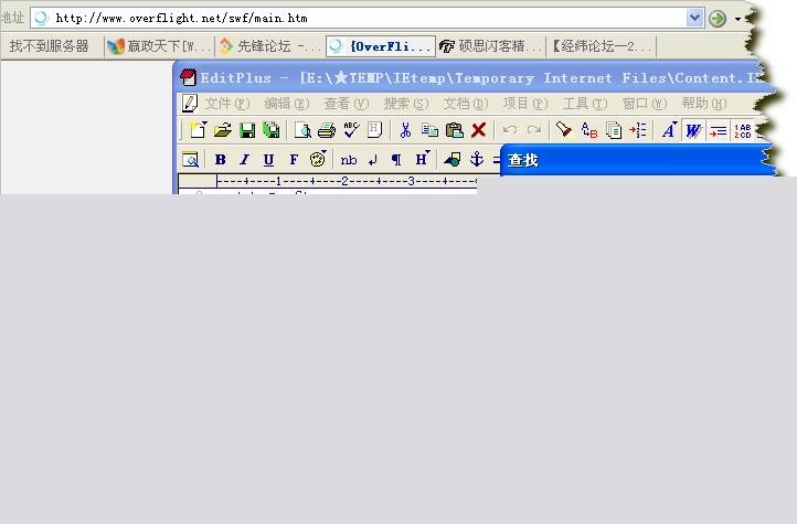 有了软件,我们还需要一个目标网站,就是你喜欢的FLASH网站了,这里我以国内的FALSH网站overflight(http://www.overflight.net)为例。 先用IE或Maxthon打开http://www.overflight.net,会自动进入http://www.overflight.net/swf/main.htm页,这时我们很容易可以使用Maxthon的插件得到这个页面中的动画。或者查看原代码查找得到FALSH路径及文件名为“main.swf”,可知是和main.htm同级目录,所以得到main.swf的下载地址为:http://www.overflight.net/swf/main.swf。再用FlashGet下载即可,这里我们把下载得到的文件专门放在一个文件夹。如图:
