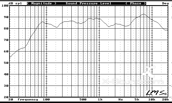 这是著名的R1900T II,但它的曲线并非完美,2-4kHz段有衰减,而7-8kHz有增益,高频也呈现较为明显的衰减。