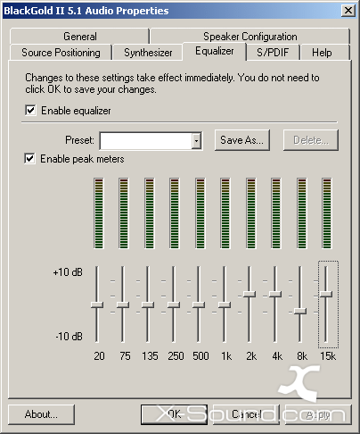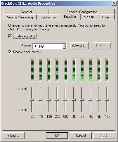当均衡曲线上有多少个可调节节点时,那么这个均衡器就被称为多少段均衡器,10段均衡器表示有10个可调节节点。节点越多,便可以调节出更精确的曲线,而调节难度则更难。大家都只到人耳只能听到模拟信号,而这些软件的均衡器都是数字均衡器,什么是数字均衡器?就是处理数字信号增益调节的均衡器,它这个操作在数字转模拟前进行,而模拟均衡器则是数字信号转为模拟信号后再处理。许多多媒体音箱上都带有简单的高低音增益调节,我们可以把这个看作是一个两段的模拟均衡器。 任何频率的增益或者衰减都会牵涉到信号的重(重新)量化,因此均衡器也有品质上的差异,就像不同的SRC品质有差异一样。前面介绍的均衡器均是软件方式实现的数字均衡器,它们的品质各不相同。