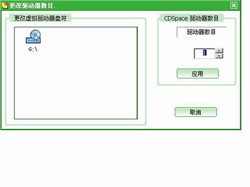 此时即可设置CDSPACE的虚拟驱动器数目,按”应用“按钮完成设置 PS:CDSPACE最大同时支持23个虚拟光驱