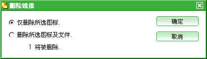 选择"删除镜像",即可将所选镜像文件删除(也可以用左键单击镜像文件,然后单击工具条上的"删除"按钮或选择"文件"菜单下的"删除镜像"选项),此时会弹出如下对话框,即选择1.只从列表中删除而保留在硬盘中;2.彻底删除