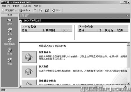 著名的刻录软件包Nero 6.0中内置了一款功能非常实用的备份工具:Nero BackItUp,我们可以借助这款组件轻松进行数据备份,不仅备份速度极快,而且还提供了定时备份功能。下面,笔者以在指定时间段备份“我的文档”为例进行说明: 第1步:选择备份源 如图1所示,点击“创建新备份作业”按钮启动备份作业向导,在这里选择需要备份的文件和文件夹,选中“我的文档”。你也可以选择“创建新备份”向导,但这样就无法实现定时备份了。