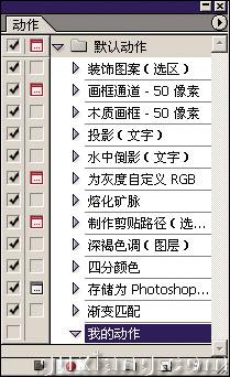 我们系最近要迎新生和接受家长们的参观,在休息大厅里要用投影机放映介绍学院及有关专业的PPT。制作幻灯片需要将近千张图片处理成一定大小、CMYK颜色类型、JPEG格式的可应用图片。一张一张的处理是不可能的,于是四处找朋友求助,终于找到了一个好办法:用Photoshop的动作命令和批处理命令就可轻松搞定它们。 一、首先我们得制作自己需要的动作命令 第一步,先打开Photoshop,选中“窗口→动作”命令,打开动作命令窗口。此时,动作命令栏里只有默认命令序列和一些默认动作。 第二步,执行“文件→打开”动作,任意打开一张图片。单击动作命令栏“创建新动作”快捷命令图标,此时就会在“默认动作”的序列下创建新动作,出现如图1所示的命令对话框,在“名称”栏中输入“我的动作”,然后单击[记录]按钮结束,会得到图2的效果。