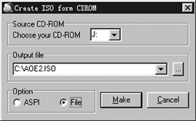 游戏玩家对于虚拟光驱应该不会陌生吧,现在最为流行的虚拟光驱软件应该算个头小巧但功能强大的Daemon了(在以前的InfoCD中有收录)。它可以将ISO、BIN等光盘镜像文件直接作为一个虚拟光驱使用,所以受到大家的普遍欢迎。但是随之而来的一个问题是,如何制作这些光盘镜像文件呢?要是你也被这个问题困扰的话,就来看看这个能够制作ISO的好东东吧。 作为一款光盘镜像文件制作工具,WinISO可以将现有光盘制作为一个标准的ISO格式文件,而且它还附带了更为强大的文件编辑功能,能够直接对ISO和BIN格式的文件进行编辑,比如往镜像文件中添加、删除、重命名或者是提取文件,同时也可以将其它格式的镜像文件转换为标准的ISO格式文件。下面就先来看看如何把一张游戏光盘转换为ISO镜像文件。 1.启动WinISO之后将游戏光盘放入光驱中,接着运行“Action→Make ISO from CDROM”命令。此时程序会弹出图1所示的窗口,在其中的“Output file”对话框中确定游戏存放的路径和文件名,同时要在下部选中“ASPI”来制作ISO文件。