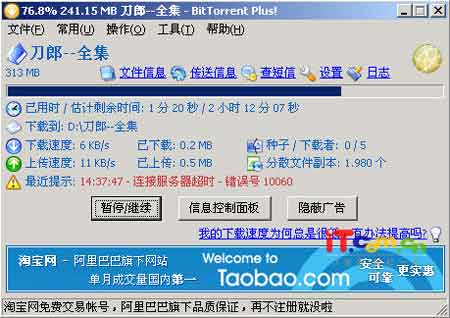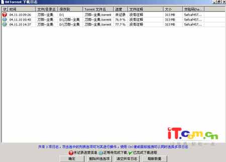 软件功能: 1、 下载日志: BitTorrent Plus! II下载日志(图2)记录了该软件下载文件的全过程,特别在断点续传方面提示用户上次下载了多少,这次从原先断点处继续下载。