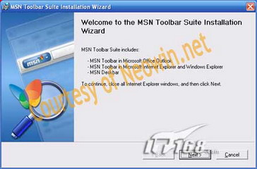 当你首次安装MSN Toolbar Suite,安装向导会要求你进行MSN Toolbar有关Outlook,Internet Explorer,资源管理器,MSN Deskbar的定置。下面给大家带来两张MSN Toolbar Suite的安装过程截图。
