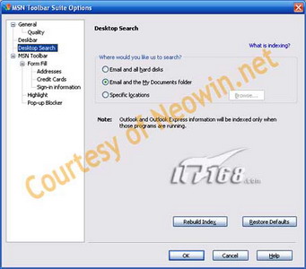 也许我们最看重的就是MSN Toolbar Suite中整合的MSN Deskbar,它就是微软桌面搜索的关键所在。经过我们的试用,其搜索结果让我们惊奇不已——搜索速度非常快,而且甚至你可以使用文件的作者信息做为关键字进行搜索。