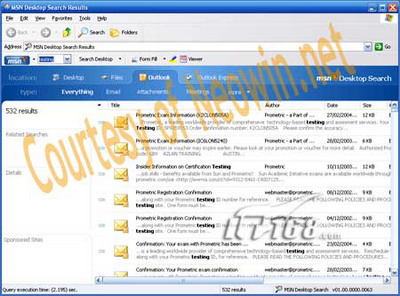 同样的技术也应用到Outlook Search中。MSN Toobar被捆绑到了Outlook中,它可以用来替代Outllook中自带的搜索功能。