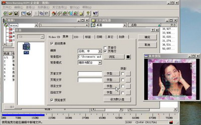需要着重说明的是“菜单”设置页。如果勾选“启动菜单”项,那么这张碟片插入VCD播放机之后将出现一个启动选单(菜单)。这个可以根据具体情况决定。如果刻录的是整盘只有一段的电影碟,就没有必要弄什么选单,因为没有什么需要选择的。倘若刻录的是象本例 这样存在多个视频段落的碟片,就可以根据自己的喜好决定是否加启动选单。 如果启用了“启动菜单”,那么: 在“编排”一栏,你可以选择菜单的排列布局格式。 “背景图片”就是指启动菜单的背景,你可以把预先准备的一张图片作为这个背景。 “背景模式”默认的是“缩放与配合”,只要你的图片长宽比例跟电视屏幕的一样,默认的就可以了。 “首页文字”是显示在菜单上方的文字,大致相当于书的封面标题。 “页尾文字”是显示在菜单下方的文字。 “项目文字”就是指具体菜单条目的问题,页就是视频轨道标题。这些文字的字体和颜色都可以设置。 设置完成以后,可以点击左下的“预览首页”查看效果。如果不满意就继续编辑。