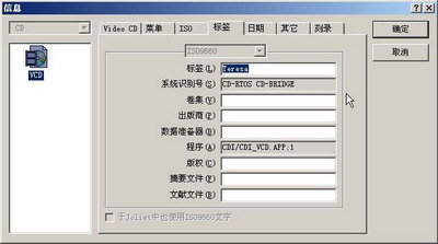 “标签”设置页,其中的“标签”栏目就是给这片光盘设置卷标,可以在电脑的资源管理器里面显示出来。这个没有很大的意义。别的项目自己随便。 光盘属性编辑完成以后,点击右上的“确定”按钮回到主界面。