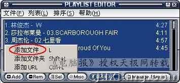 利用“播放文件”选项一次只能选择播放一首歌曲,如果想随心所欲地选择不同目录中的音频文件,以便实现连续播放又该怎么办呢?