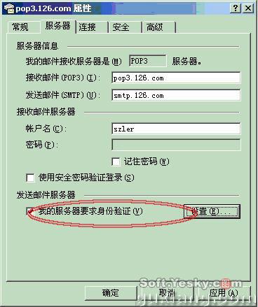 我们在OE里设置一个新的邮箱用户,建立好后点击:工具--帐户,在internet帐户里点击属性,在服务器标签下把“我的服务器要求身份验证”打上对勾。(如图1)