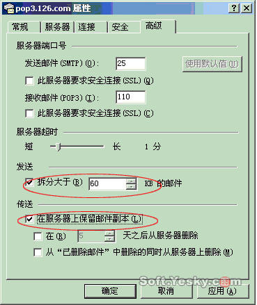 这一步很关键,如果不设置就无法发出信件,再点高级标签。看到“发送”选项,有一个“拆分大于”KB的复选框。(如图2)