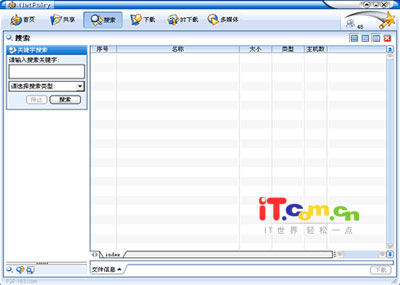 二、如何搜索你要寻找的资源 NetFairy主要功能就是通过联机用户的资源共享进行资源搜索。首先点击软件上方工具栏中的“搜索”按钮,随即会切换到搜索页面(如图3)。