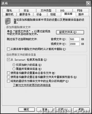 播放软件里面的“媒体库”可以方便地管理电脑中的多媒体文件,但是每次都要进行扫描才可以进行更新,很麻烦,其实我们可以让软件自动更新这些多媒体文件,发现有新的文件就可以自动将它们添加到媒体库中。下面就来介绍一下在Windows Media Player和RealPlayer中的设置方法。 1. 在Windows Media Player中设置 点击菜单“工具→选项”,在“选项”对话框中选择“媒体库”标签,接着点击下面的“监视文件夹”按钮,如图1所示。