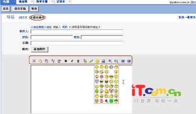 步骤二:写邮件。点击“写信”按钮,进入到写信界面,纯文本就不再多说了,笔者想说一下多媒体邮件,在写信的正文部分可以看到一排图标,来帮你完成一封多媒体邮件,针对字体、颜色等进行设置,还可以添加各种可爱的表情,另邮件也富有色彩(如图2.4)。