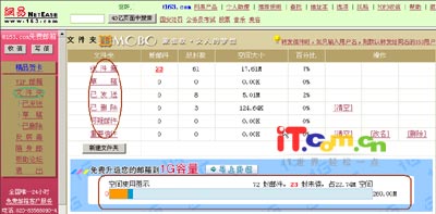 存储空间:100M(通过雅虎通可扩容到1G) 附件大小:10M 使用简便性:☆☆