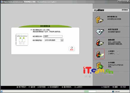 玩数码的朋友大多都有这个观点:三星的产品不一定是性价比最高的,但是三星的产品一定是最时尚,最漂亮的。三星的网络相册也很好的继承了这一优点,使得你在查看图片也能赏心悦目。 注册相册 浏览三星网站时最好将分辨率调整为1024x768,否则在浏览某些网页时会有显示不正常的情况。注册过程稍微繁琐一些,首先打开IE,输入http://www.photal.com.cn,网站首页给人的第一感觉就是美观大方。在首页的左边有一排栏目链接,点击“网络相册”,然后点击“我的相册”,跳转到相册登陆页面。要注册新用户的话,点击“会员加入”,进入注册页面。注册时按照网页要求填写即可,填写邮箱时一定要填一个速度快些的,因为注册后网站会把密码发送到你的邮箱内。提交完注册信息后,就去你刚刚填写的那个信息去收信。如果信件还没有到的话稍微等待一些时间。收到三星网站发送给你的信件后,首先点击信件中的链接激活用户,然后用信件中给你的密码登陆三星相册网站,这样你就拥有了30M的网络相册了。 建立相册和上传图片 登陆之后首先建立一个新相册,点击左侧工具栏中的“创建个人相册”,然后输入相册名称,选择一个相册类型,点击“确定”。这样一个相册就被创建完成了,而且会自动弹出这个相册的操作界面。(图2)