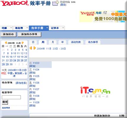 Yahoo!Toolbar还为用户提供了书签、效率手册、地址簿的快捷功能,这些功能对于工作的日程以及记事都有很大的帮助,而且做到了保密性、稳定性,所有功能都可以在雅虎个人帐户的首页中找到(如图4)。