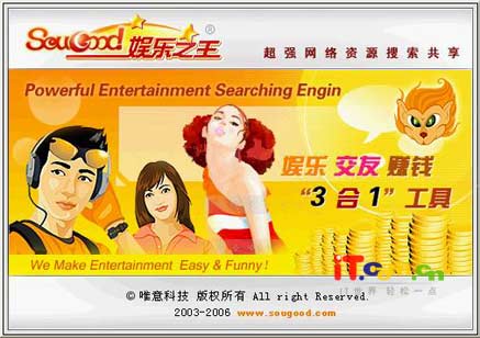 娱乐之王SouGood是国人自行设计开发的一款针对个人用户的P2P免费软件,该软件采用最新的传输协议,对各种用户环境(包括带防火墙)都能够支持文件传输,同时能最大限度的利用网络带宽,经笔者测试,下载速度稳定在200K左右,可以说是目前国内最快的P2P软件。由于Sougood是一款P2P软件,所以它可以聚集海量的资源,每一个用户都可以是服务器,同时Sougood也是一个综合性的娱乐平台,我们在用它进行搜索下载的同时,可以进行在线聊天,玩在线游戏等。经笔者几天的试用,发现Sougood的确是一款不错的P2P软件,下面就把试用过程写下来,与我们一起来享受sougood带给我们的无穷乐趣吧。
