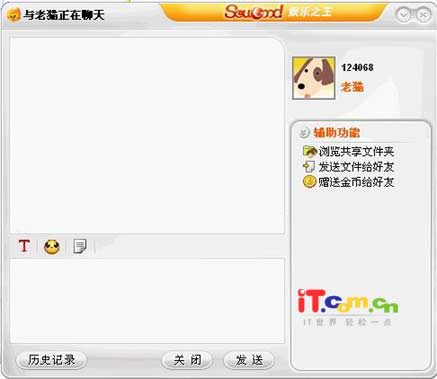 在消息输入窗口中输入内容,然后点击发送后好友就可以看到了。同是在这里还可以浏览好友共享文件及发送文件给好友,也可以赠送金币给好友,另外还要以与QQ一样,给好友发送表情呢。
