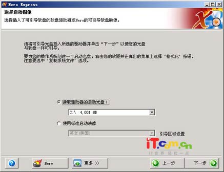 这样会提示我们添加光盘数据文件,添加完毕单击“下一步”,这里将是制作的DVD光盘能够启动的关键所在。向软驱中插入一张事先准备好的启动软盘,然后在选中“读取驱动器的启动光盘”选项,并在其下拉菜单中选择软驱(图7),做好设置之后单击“下一步”进行刻录最终设置,这里的操作与制作普通数据光盘是一样的,笔者在这里不再多述。