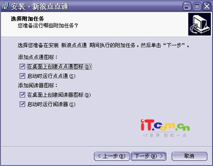 大家都知道国内最大的门户网站新浪在前几天刚刚推出RSS聚合频道,为我们浏览网站新闻增加了一个新的途径,通过RSS阅读软件就可以更加轻松的浏览新闻了,不过好用的RSS阅读软件都是英文的,在使用上多少有些遗憾。前几天发现新浪推出了一款全新免费的RSS阅读器:新浪点点通阅读器,通过它我们就可以更加轻松自如的获取、浏览和管理XML格式的信息了,同时这款软件不只是支持新浪的RSS频道,可以自由添加其它支持RSS格式的网站地址,所以不用再登录各个网站就可浏览其网站内容,完全可以把他看作是一个信息通道,也可以把他看作是一个资讯平台,下面笔者就与大家一起来体验一下这款软件的强大功能吧。 软件档案: 软件名称:新浪点点通阅读器 软件版本:1.0.0.1 软件类型:共享软件、免费软件 运行环境:Win9x/winME/win2000/winXP 下载地址:http://dlbe.it.com.cn/softweb/software/network/brosplugin/200412//7745.html 推荐等级:★★★★ 一、软件安装及主界面简介 登录新浪下载频道,下载软件的安装文件,然后双击安装文件就进入了软件的安装界面,安装过程与其它软件一样简单,其中在软件安装过程中可以选择是否开机直接运行“新浪点点通”与“新浪点点通阅读器”(如图1所示),可见软件做的还是比较体贴的,选择好后点击下一步软件就安装完成了。