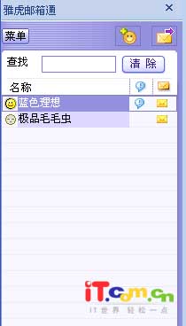 一、嵌入式即时通讯 登录邮箱后,点击其左上角的“雅虎邮箱通”按钮,就可以在页面左侧打开邮箱通的主界面(如图2所示),