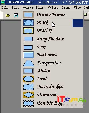 随着数码相机的普及,很多家庭都用上了数码相机,这样对于照片的保存和后期处理都很方便,而且现在用于处理数码相片的软件也很多,对于最简单的相片处理——加相框,很多软件都支持,如我行我素、Photoshop、Fireworks等都可以,但是如果仅仅是为了加相框而装这么一个大型的软件,就有点“杀鸡焉用宰牛刀”的感觉,其实我们只要使用“FrameMaster”(下载地址:http://dlbe.it.com.cn/SoftWeb/software/photo/image/200412/7975.html)这个专门加相框的软件就可以轻松搞定。 第一步:运行软件,点击工具栏上的打开按钮来选择要添加相框的图片。 第二步:点击菜单“Frames”来选择一个相框的分类。(图1)