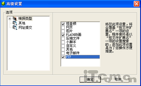 我们选择自己需要的东西,比如FLASH动画、视音频、FTP等。只要在所选的前面打上勾,点击“确定”,就OK了。
